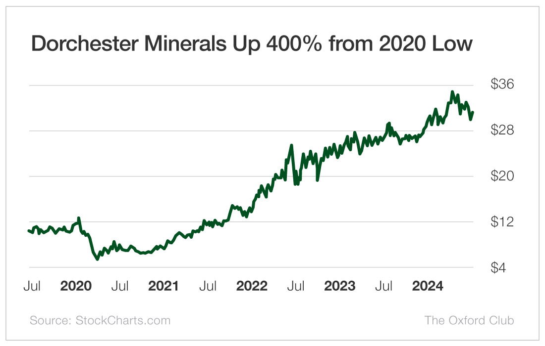 The company owns a diverse portfolio of mineral and royalty interests across multiple basins in the United States, including the prolific Permian and Bakken. Dorchester maintains a lean operational structure by not directly engaging in drilling or operating wells, which helps keep costs low and margins high.