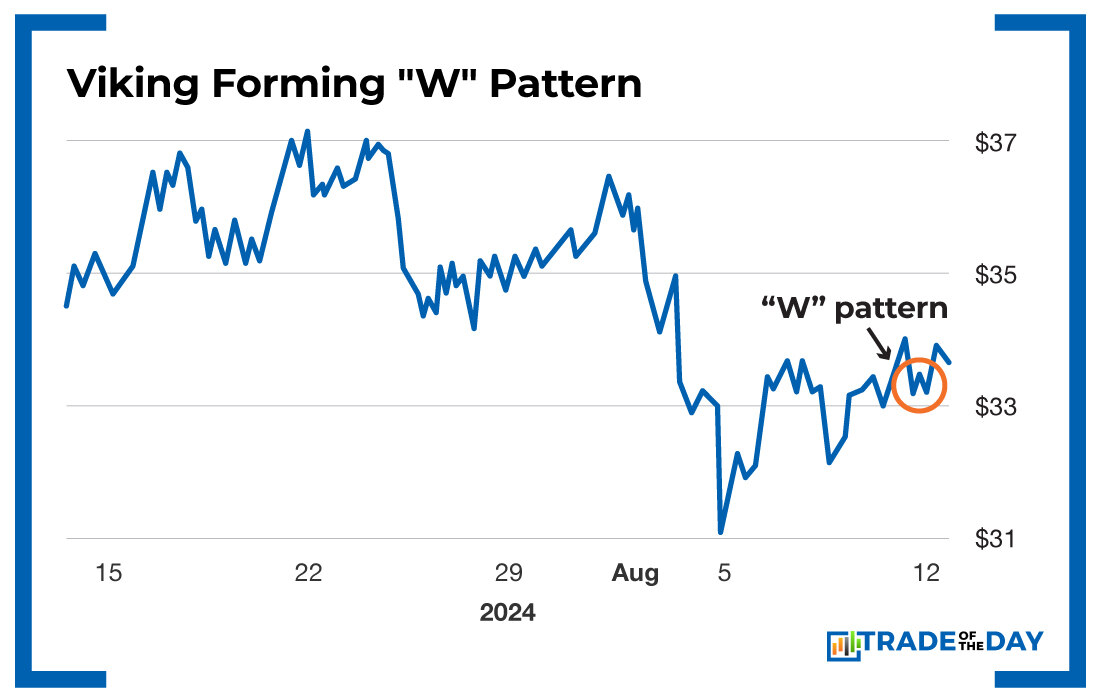 A very noticeable “W” on the daily chart gives me the indication that VIK is now poised to re-test the recent highs around $37.00. To see how we're playing this trade, you're invited to join us in our new live streaming service called Catalyst Cashouts LIVE. Tomorrow at 2 p.m. EST. I'll reveal the exact trade for you to make. Join Cashouts today – and join us to get this new trade tomorrow afternoon!